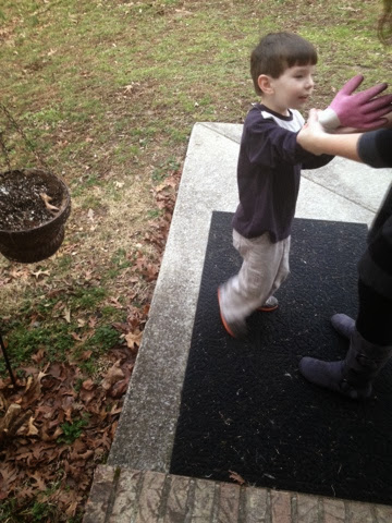 I came home from work to a dead chipmunk in the driveway. I'm unsure of its cause of death, but Jason is on night shift and the trash runs in the morning. I ask Carter and Hunter to deal with it, but they wanted no part, even for a dollar. Graham said "I'll do it!"